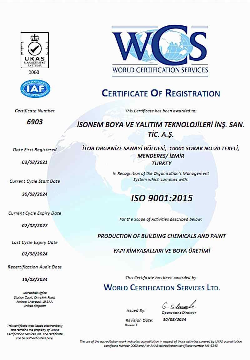 Isonem Boya ve Yalıtım Teknolojileri personeli, kalite yönetim sistemi için kalite hedeflerini sağlama bilincinde olup ve bu sisteme süreklilik sağlayan yaklaşımla çalışırlar.